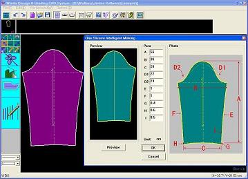 ②可記憶打版數(shù)據(jù)和步驟,按輸入的各規(guī)格尺寸自動生成新紙樣,并可自動放碼。