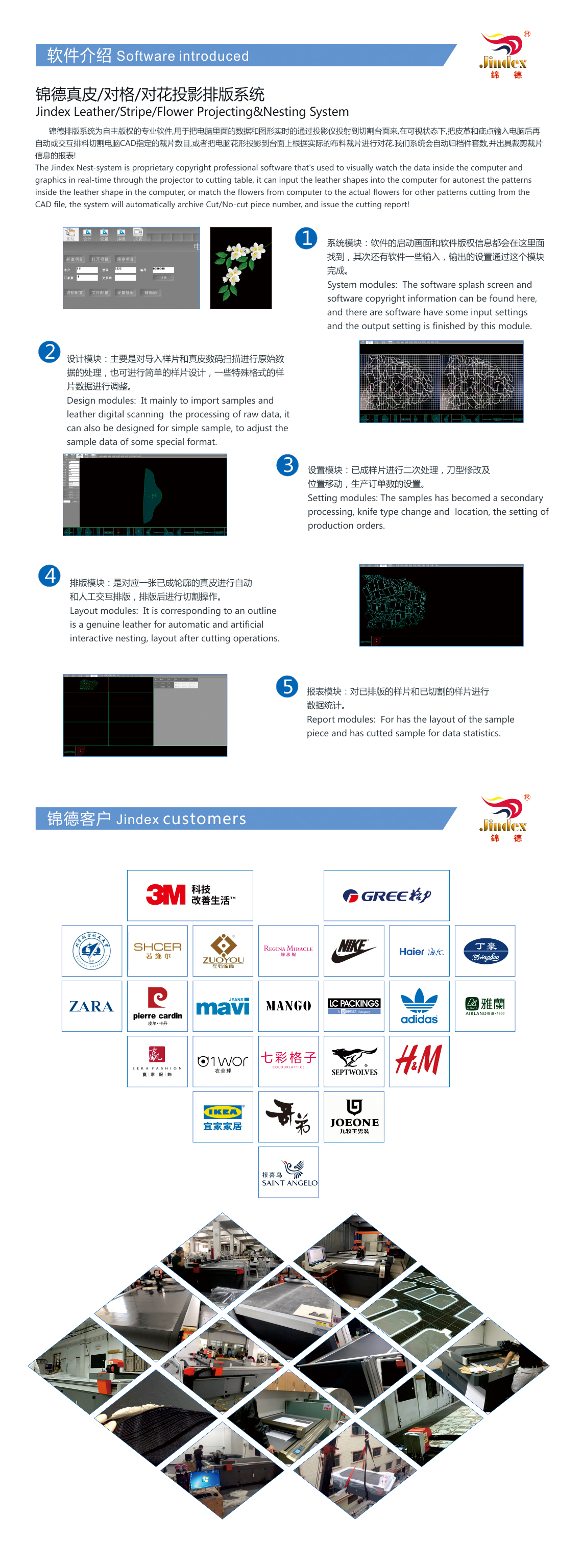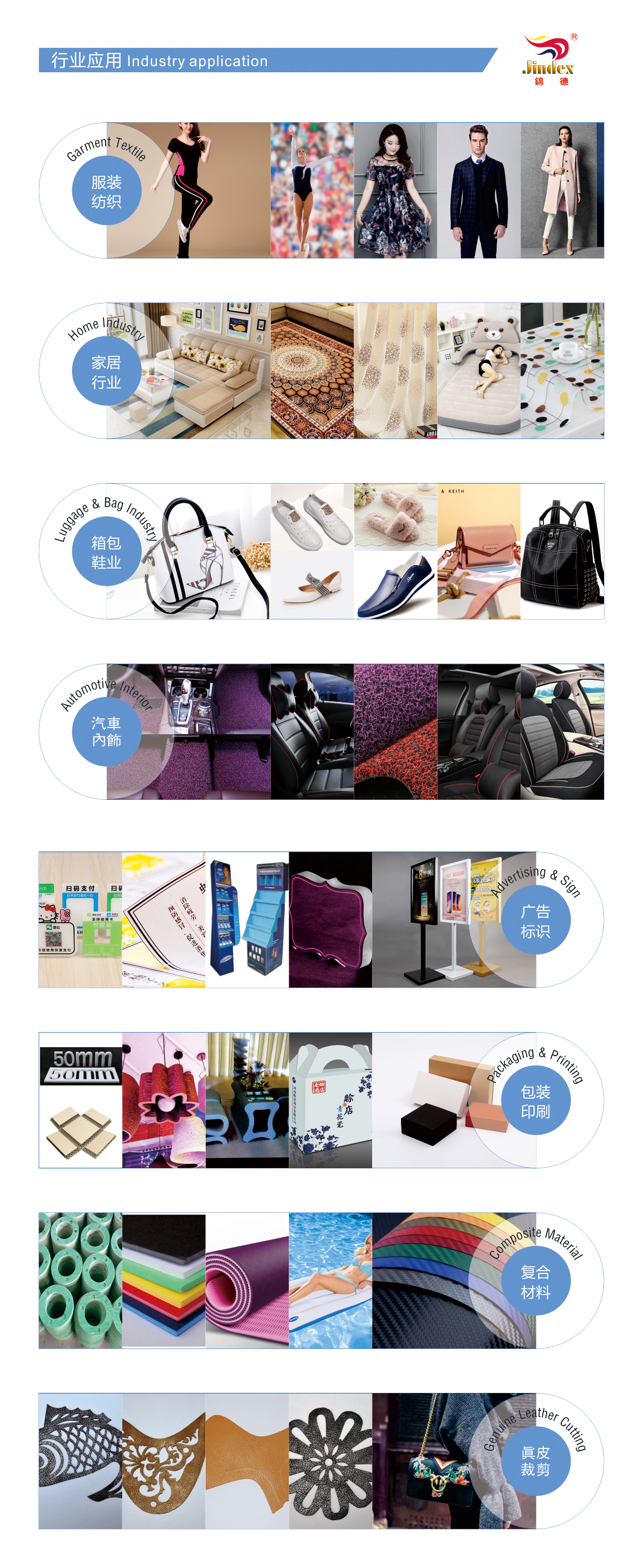 Any CAD software can be connected. It is widely used for plotting and cutting for the industries and sectors like garment, shoe making, cases, handbags, laser cutter molds plotting, lighting fixtures, advertising gifts, self-adhesive and color box packing.