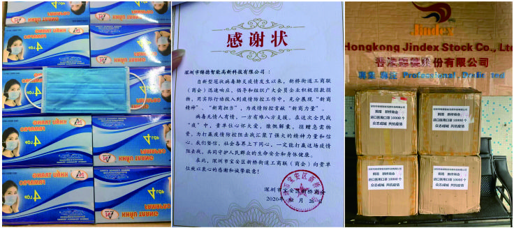 開年以來,錦德公司積極配合政府工作,積極響應(yīng)政府號令,深圳市錦德智能高新科技有限公司以柔性材料切割提供完整解決方案的產(chǎn)品研發(fā)及銷售,公司總經(jīng)理劉明軍先生表示:這個新型冠狀病毒肺炎出現(xiàn)的時候,我第一時間想到是我們應(yīng)該為社會做些事情。由于現(xiàn)在是在特殊時期,國內(nèi)口罩貨源緊張,立刻聯(lián)系國際友人,從國外緊急采購近萬個越南進口醫(yī)用口罩,援助給新橋商會及新橋街道辦,為新橋街道的疫情防控工作助力,以實際行動踐行企業(yè)家的社會責(zé)任與擔(dān)當(dāng),盡微薄之力!